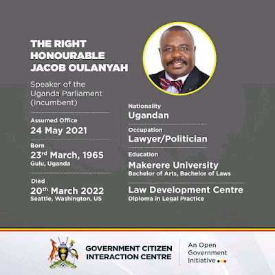Death - Obituary: DALIFAiSPECIAL joins Uganda in mourning the passing of the Speaker of Parliament, Rt. Hon. Jacob L'Okori Oulanyah, (1965 - 2022). May His Soul Rest in Eternal Peace.